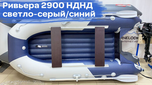 Лодка огонь! Ривьера Компакт 2900 НДНД светло-серый/синий. Светлая фурнитура.