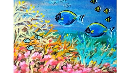 🌊🐠🐡Красочный подводный мир. Рисунок сухой пастелью на крафтовой бумаге.🌊🐠🐡