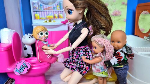 Я ПРИКЛЕИЛАСЬ К УНИТАЗУ НА 24 ЧАСА! Катя и Макс веселая семейка! Смешные куклы Барби и ЛОЛ Даринелка