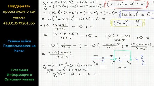 Математика Найдите наибольшее значение функции y = 10 ln(x+5) -10x -21 на отрезке [‐4,5; 0]