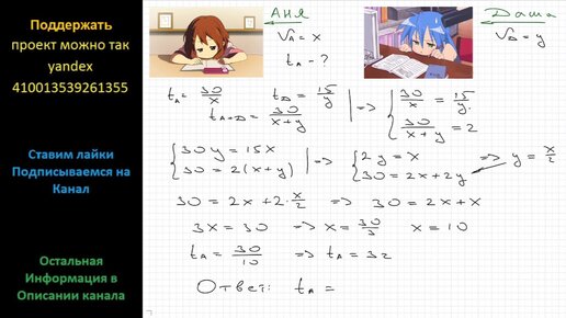 Математика Аня и Даша решают задачи. Аня может решить 30 задач за то время, за которое Даша может решить в два раза меньше задач Аня и Даша