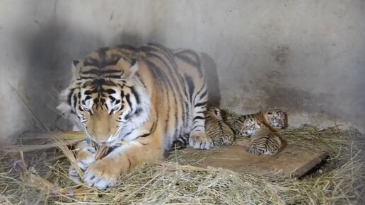 Тигрица ЗАЩИЩАЕТ СВОИХ ТИГРЯТ и веник, Тайган!