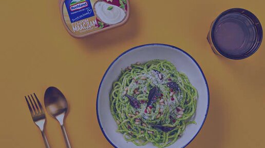 Спагетти с классическим соусом песто из рукколы и с плавленым сыром