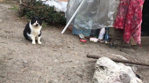 Объявился кот Борода, весь побитый и голодный. Видеозарисовки зимующего в Крыму в палатке у моря 25.01.23г.