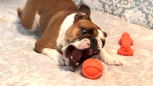 Мяч или кость, что больше понравится бульдожке?