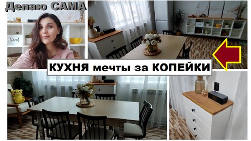Делаю кухню мечты за копейки,Обои поклеила на пол,стулья из дачи,комод из досок,Ремонт своими руками