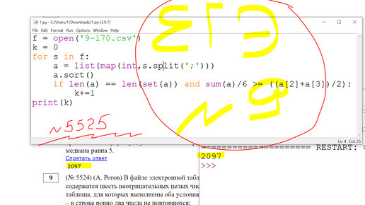 Программируем на Python с помощью списков и множеств задачу № 9 на электронные таблицы (ЕГЭ 23 - разбор интересного задания Рогова, № 5525)