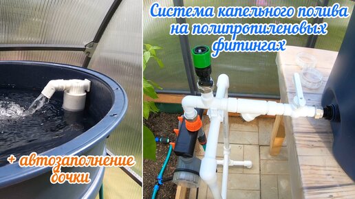 Система капельного полива на полипропиленовых фитингах + капельная лента. Автозаполнение бочки.