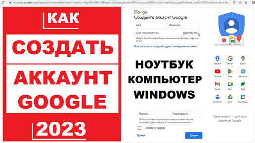 Создать аккаунт Гугл на ПК 2023 / Без телефона / Gmail почта, Play Маркет, Youtube канал