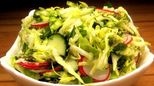 Витаминный салат из капусты с редисом и огурцами