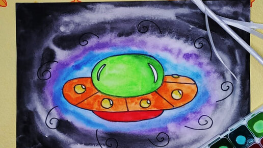 Как быстро нарисовать летающую тарелку ребенку. Рисуем транспорт по видеоурокам. НЛО в небе. Космические рисунки. Легкие рисунки.