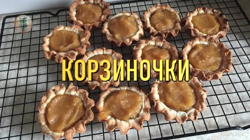 КОРЗИНОЧКИ из ПЕСОЧНОГО теста, Начинка - пюре яблочное, Крем - Сливочный.