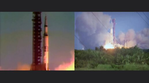 Видеоэффект "зависания" в полёте ракеты-носителя Сатурн-5 миссии Аполлон-11 (вариант 2)