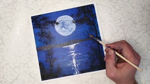 Простой, лунный пейзаж 🌃роспись акрилом