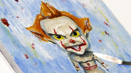 Как нарисовать игрушку Пеннивайза. Картина маслом