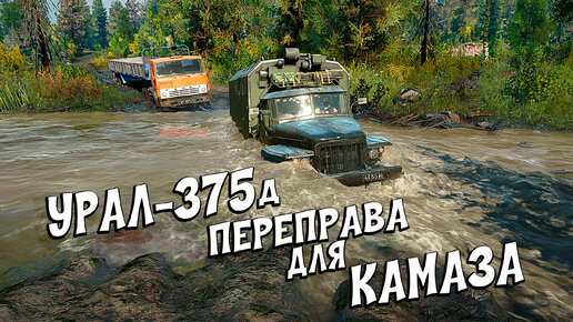 Урал 375д помогает Камазу 5410 седельному тягачу пройти реку с хорошим течением ( SnowRunner )