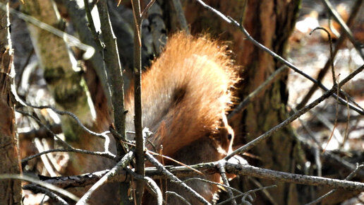 Белка делает припасы из лакомства которое принесли люди!