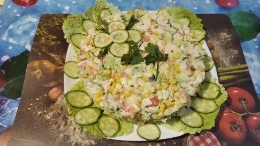 Салат с пекинской капустой крабовыми палочками и кукурузой
