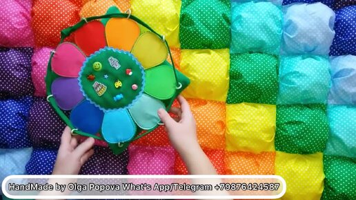Бомбон-одеяло в детскую кроватку и развивающая подушка были сшиты на заказ для мальчика Гоши, изделия улетели в Москву.