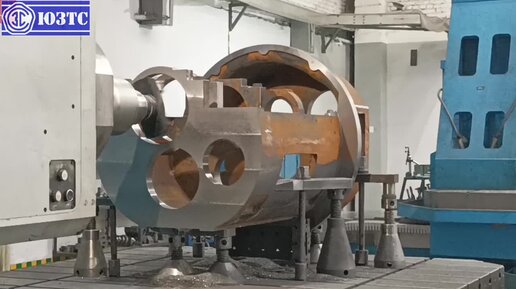 Расточка отверстия в корпусе редуктора главного привода токарно-карусельного станка. Участок горизонтально-расточных станков с ЧПУ ЮЗТС.