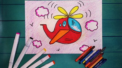 Как ребенку быстро нарисовать рисунок вертолет фломастерами. Рисуем транспорт по видеоуроку.