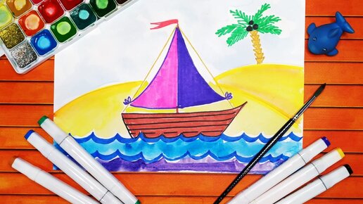 Как быстро нарисовать рисунок парусный кораблик ребенку. Рисуем транспорт по видеоуроку.