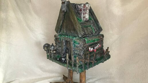 Избушка-шкатулка на курьих ножках из картона и самозатвердевающей массы.
