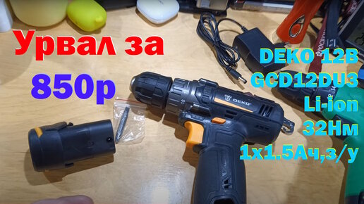 DEKO за 850р-1500р Аккумуляторная дрель-шуруповёрт DEKO 12В GCD12DU3 Li-ion, 32Нм,1х1.5Ач,з/у