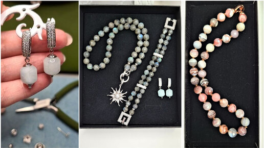 Украшения из лабрадора, аквамарина и агата Ботсвана. Как закрепить замок? Делюсь идеями.