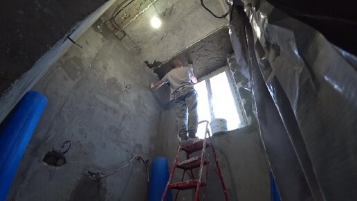 Блог.Клеим фасадную сетку на потолок в санузле.