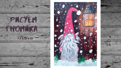 Как нарисовать ГНОМА И ФОНАРЬ | Рисуем гуашью | Зимний гном