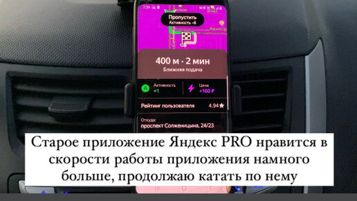Старое приложение Яндекс PRO нравится в скорости работы приложения намного больше, продолжаю катать по нему