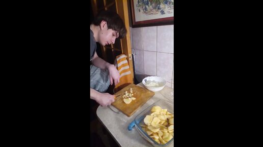 Кура с яблоками, луком и чесноком в исполнении Серафима