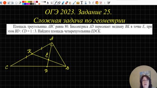 Найти площадь части треугольника. Вспоминаем свойства площадей, медиан и биссектрис.