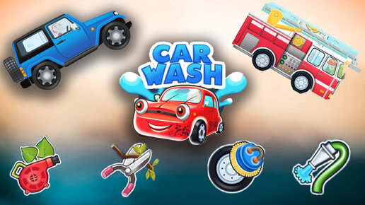 Очищаем от грязи Пожарную машину, джип и автобус / Car Wash