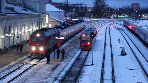Вечерние поезда во Пскове. Поезд Ласточка отправляется в Печоры.