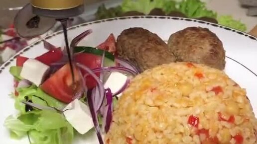 Булгур с овощами и котлетами
