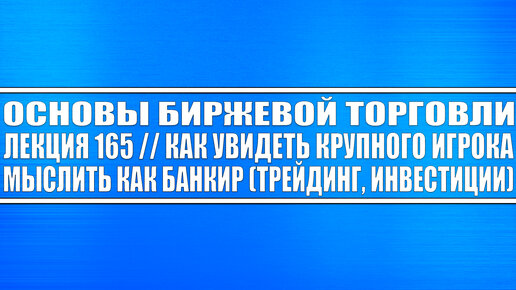 Основы биржевой торговли №165 / Как увидеть крупного игрока? Логика банкиров (трейдинг, инвестиции)