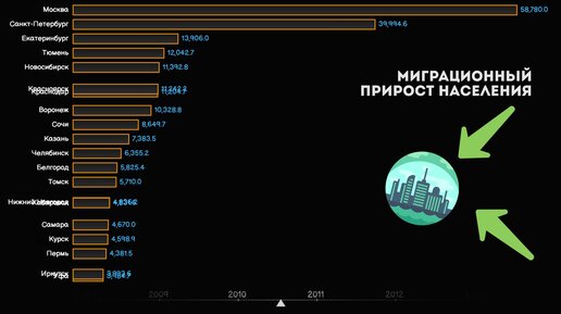Миграционный прирост населения РФ.Топ городов России по количеству прибывших жителей.Статистика.Население регионов России