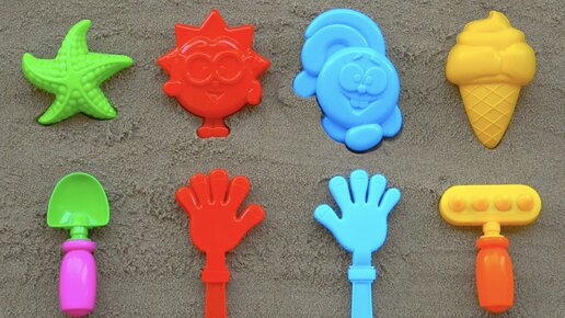 Учим Названия Цветов | Смешарики |Цветное мороженное и детские инструменты для песка : Учим цвета с Игрушками и Детскими Песенками