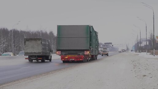 Перевозка зерносушилки на 4-осном полуприцепе Тверьстроймаш.