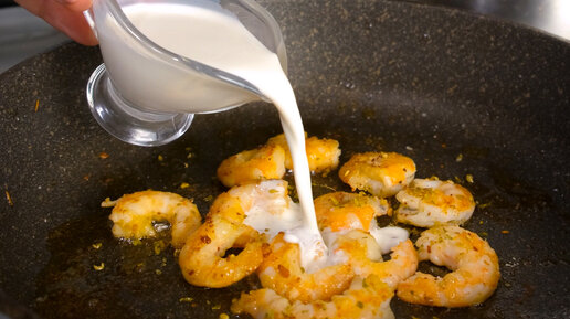 Поразительное сочетание! Вкуснейшая паста с креветками в сливочном соусе. Рецепт сытного ужина.