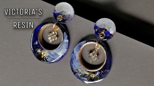 Эффектные синие серьги со стразами и ручной росписью. Ссылки на смолу и молд в описании