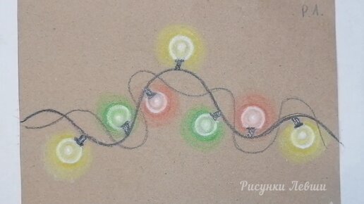 Как очень просто нарисовать гирлянду с помощью белого и цветных карандашей