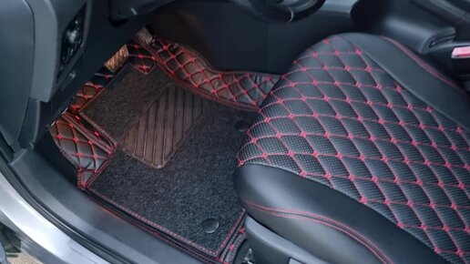 Чехлы экокожа Nissan Qashqai (J11) - Дизайн (Стандарт) Черные с красной ниткой