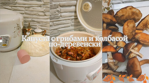 Тушеная капуста c замороженными грибами и колбасой