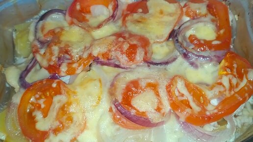Картофельная запеканка с куриной грудкой под сыром.