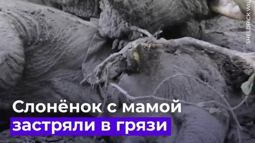 Слониха с малышом увязли в огромной грязевой луже. И людям пришлось провести целую спасательную операцию, чтобы вызволит их оттуда