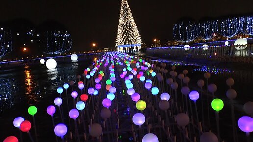 Самое красивое в Санкт-Петербурге: Ростральные колонны с огнём, Дворцовая площадь с ёлкой, Нева и Зимний дворец