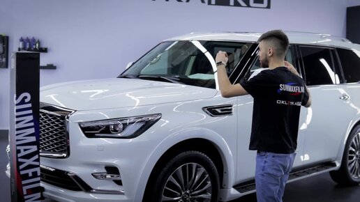 INFINITI QX80 | оклеили кузов и хром в глянцевый полиуретан | защитили глянец и мониторы в салоне